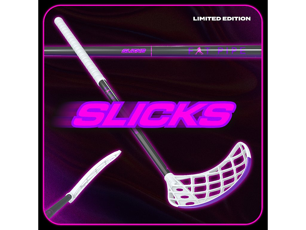 Stredne tenká a ľahká palica FAT PIPE SLICKS zo 100% karbónu as novou čepeľou SILK SLICKS. Tvrdší shaft je ideálny skôr pre strelcov. Lepkavý grip STICKY.