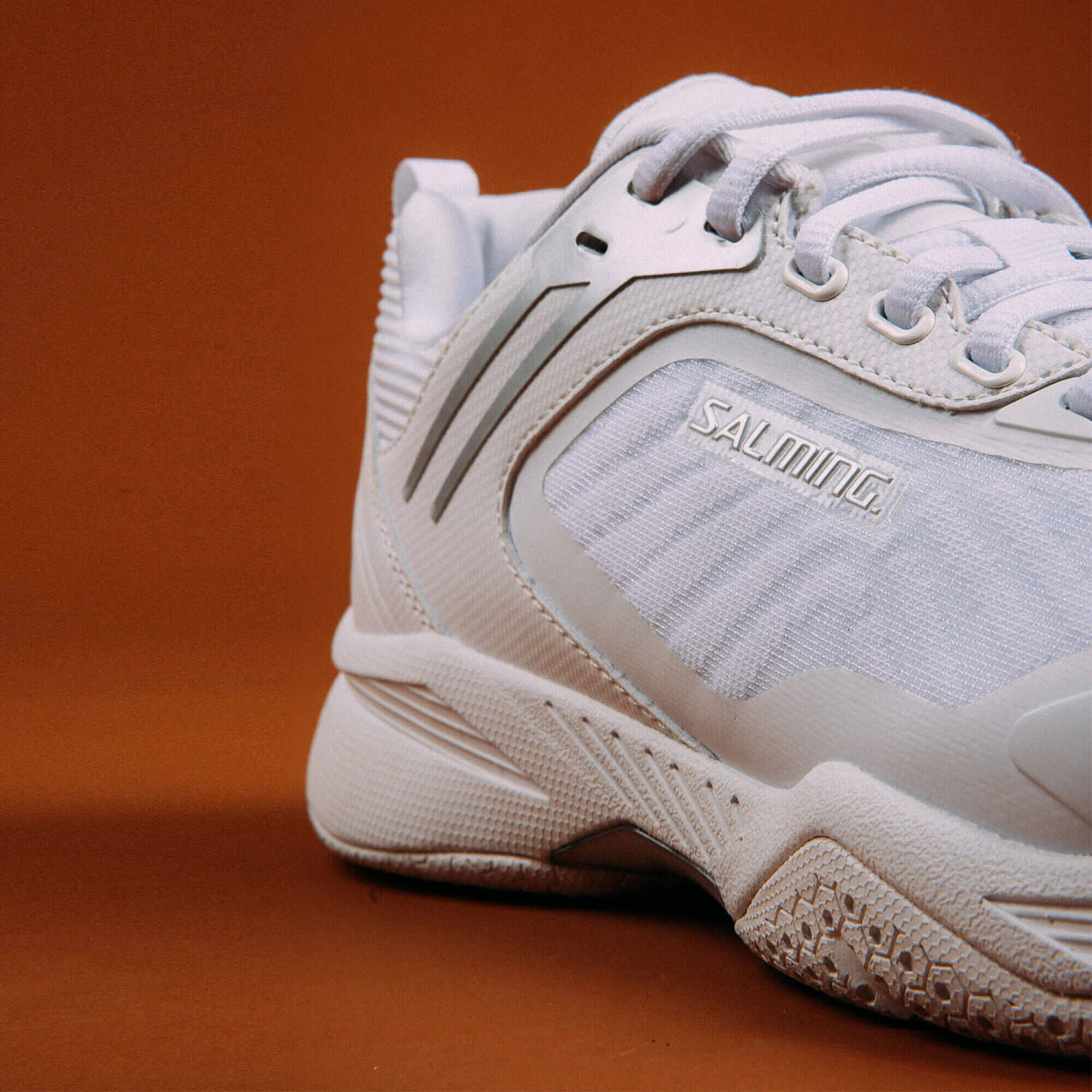 Model Fusion Pro využíva tvarový koncept z obľúbeného bežeckého modelu Salming Recoil Prime 2, ktorý je poznať predovšetkým v jeho prednej časti. Na sálovú topánku je výraznejšie zahnutý, čo zvyšuje flexibilitu a umožňuje oveľa rýchlejší odraz. Priedušný zvršok z mesh materiálu udrží chodidlá v suchu a pohodlí, zatiaľ čo výstuhy zo syntetickej kože v kľúčových zónach zaisťujú vyššiu odolnosť. Stabilitu podporuje technológia Exoskeleton v oblasti strednej časti chodidla a predĺžený TPU prvok v medzipodrážke pre lepšiu torznú pevnosť pri zachovaní nízkej hmotnosti.